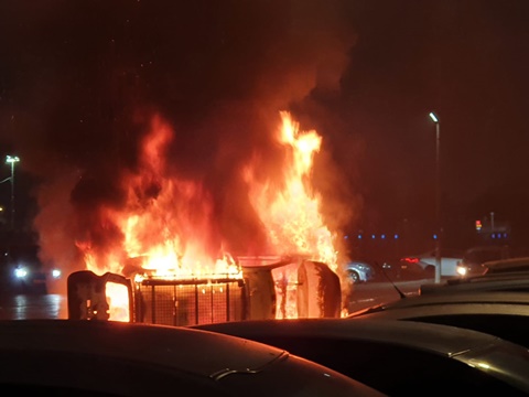 תחנת המשטרה בעיר העתיקה בעכו הוצתה ונשרפה כליל כעת בפרעות בהשתתפות מאות פורעים ערבים.
