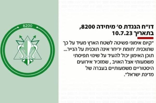 שלושה חודשים לפני מתקפת שבעה באוקטובר - נגדת ס’ מיחידה 8200: "תוכנית 'חומת יריחו' אינה תוכנית על הנייר; [היא כוללת] מכת אש תמ"ס [תלול מסלול] עצימה, יצירת פרצות במכשול, חצייה רכובה על גבי ג'יפים, הסתערות אלימה על היעד, לקיחת בני ערובה, מעבר להתקפה"